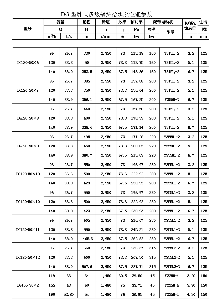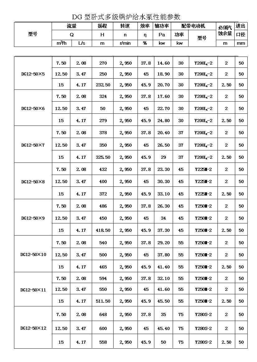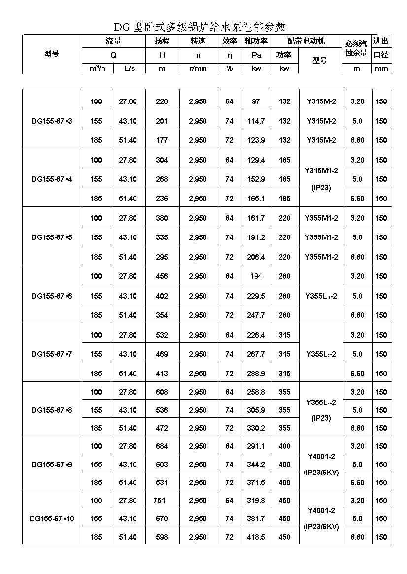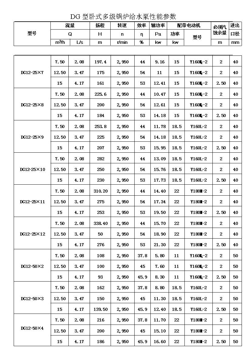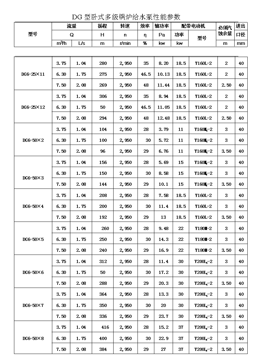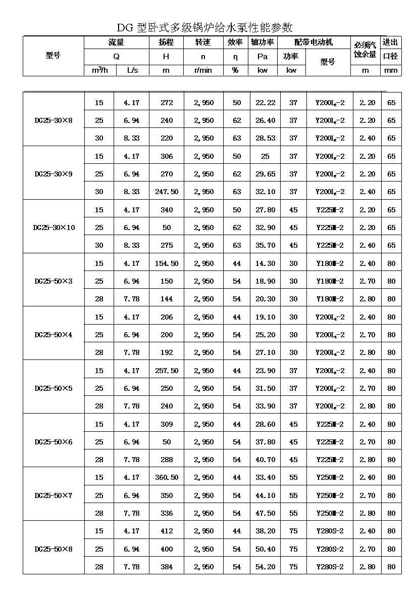 DG型鍋爐給水泵是臥式單級多吸分段式離心水泵。供吸送清水(含雜質(zhì)量小于1%,顆粒度小于0.1mm)及物理化學(xué)性質(zhì)類似于清水的液體之用。輸送介質(zhì)溫度不高于105攝氏度,適用于小型鍋爐給水及城鎮(zhèn)供水等場合。DG型鍋爐給水泵屬國家經(jīng)委、機(jī)電部聯(lián)合推廣的節(jié)能產(chǎn)品,用來代替GC型鍋爐給水泵,其效率平均比GC型高8%,敬請用戶優(yōu)先選用。