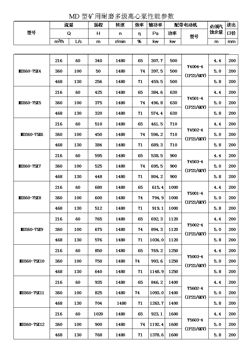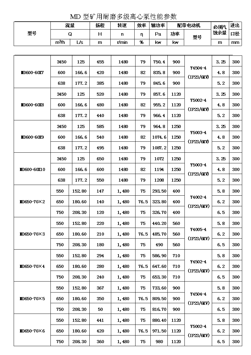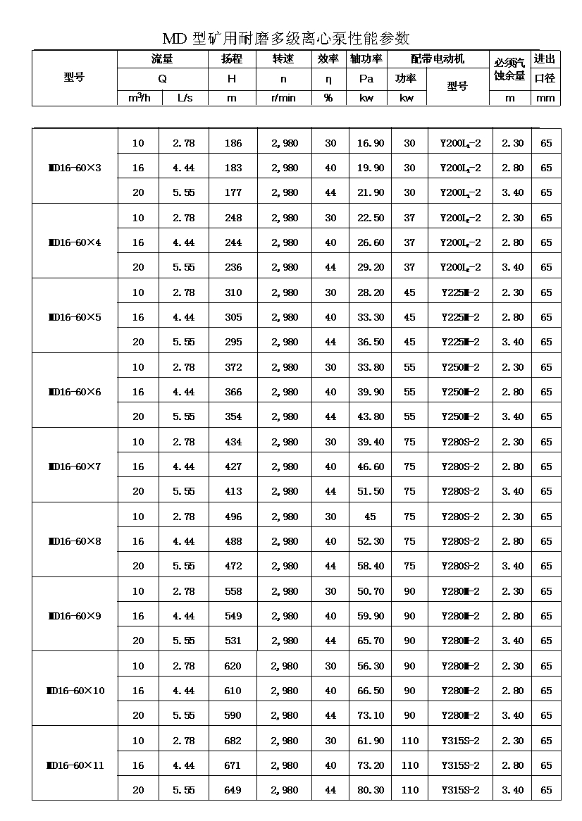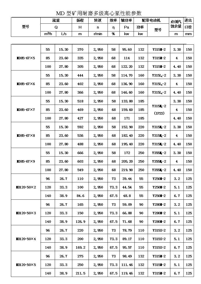 MD型耐磨多級離心泵,是我公司在D型單吸多級清水離心泵的基礎上,改造設計的一種耐磨多級離心泵。MD型耐磨多級離心泵,高效節能,耐磨可靠,壽命長, 特別適用于礦山排水,抽送固體顆粒含量不大于1.5%(顆粒直徑小于0.5毫米)的礦井水及其他類似液體,液體溫度不高于80度。