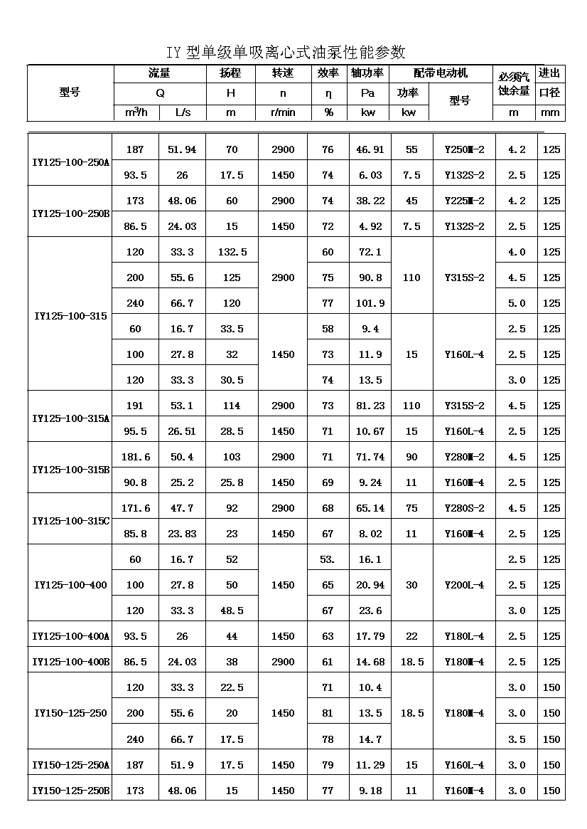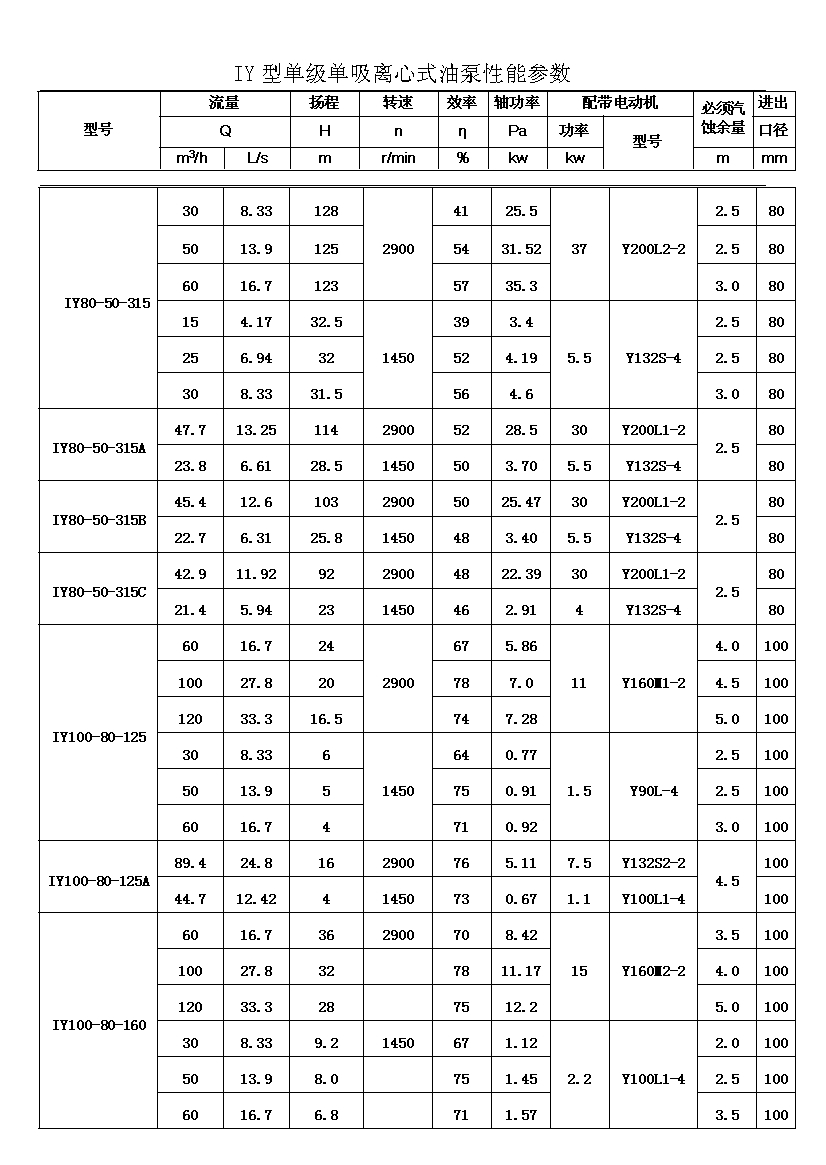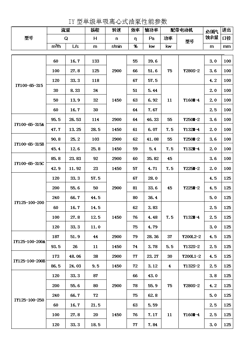 IY系列單級單吸輸油離心泵,適用于輸送不含固體顆粒的石油產(chǎn)品,被輸送介質(zhì)的溫度在-20℃~+150℃之間,泵的***高工作壓力布大于1.6MPa,吸入口壓力不大于0.8MPa,主要用于油田、煉廠、石油化學(xué)工業(yè)。其性能參數(shù)為:流量Q:6.3~400m3;揚程H:5~125。